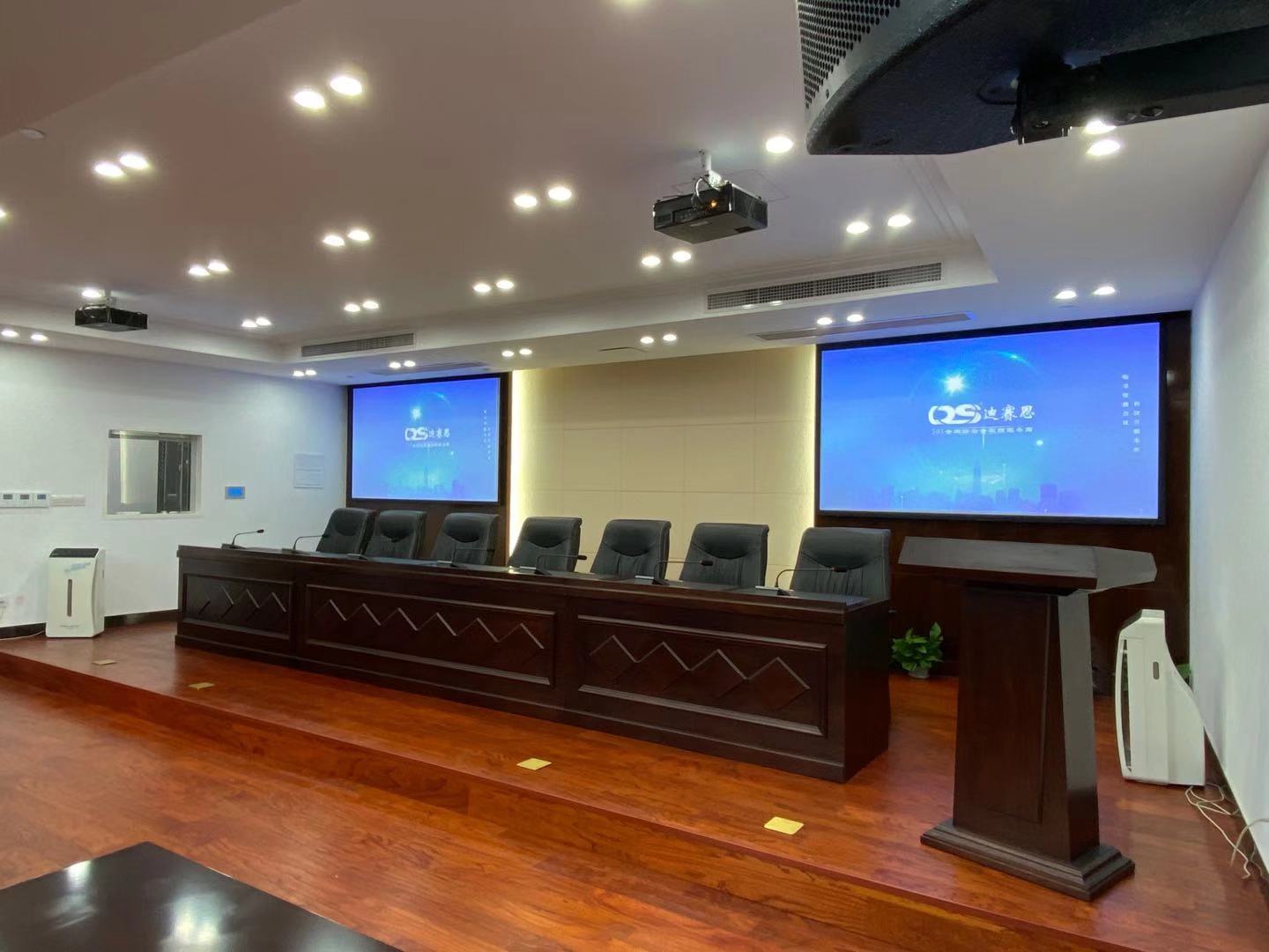 會(huì)議室的主席臺(tái)正中間配置2套高清投影幕,通過(guò)會(huì)議室的顯示設(shè)備可以完成對(duì)各種圖文信息的大屏幕顯示,包括算機(jī)信號(hào)、DVD機(jī)信號(hào)、錄像機(jī)信號(hào)等。由於會(huì)議室面積較大,為了各個(gè)位置的人都能夠更清楚的觀看,系統(tǒng)設(shè)計(jì)了投影機(jī),投影機(jī)達(dá)到4000流明的高度,16:9的畫面可以真實(shí)的顯示出筆記本畫面,無(wú)壓縮。并配置了2幅強(qiáng)光正投硬幕,能夠滿足會(huì)場(chǎng)在高亮度的情況下都能清晰的顯示畫面。