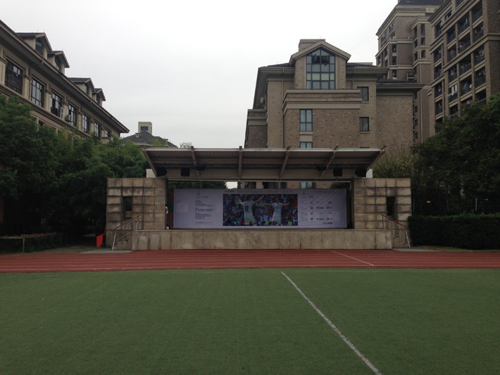 我司擴聲設(shè)備成功應(yīng)用于杭州綠城育華學(xué)校室外田徑場,主音箱采用我公司4只15寸防水揚聲器,另配置2只10寸全頻揚聲器作為舞臺部分返聽音響。發(fā)言部分使用2套一拖二無線麥克風(fēng),滿足移動發(fā)言需求??紤]到田徑場室外活動較多,音頻播放(廣播體操、運動員進行曲等)需求較大,配置1臺DVD播放器。