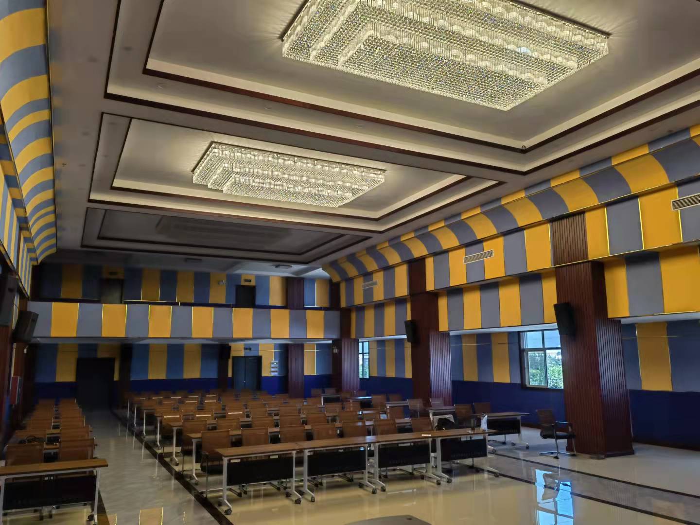 會議室采用DS無線數字會議系統(tǒng):系統(tǒng)采用無線方式連接,便攜安裝,而且無需布線,不影響整體的裝修布局。可連接會場音響擴聲及錄音設備,可與DS中控系統(tǒng)結合,締造完美的會議系統(tǒng)方案。