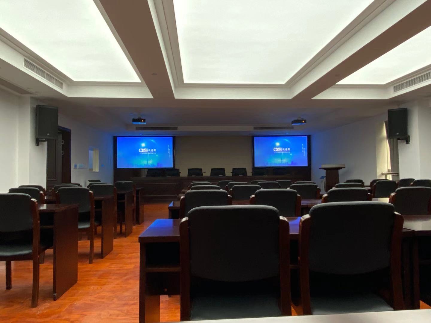 會議室的主席臺正中間配置2套高清投影幕,通過會議室的顯示設(shè)備可以完成對各種圖文信息的大屏幕顯示,包括算機(jī)信號、DVD機(jī)信號、錄像機(jī)信號等。由於會議室面積較大,為了各個位置的人都能夠更清楚的觀看,系統(tǒng)設(shè)計了投影機(jī),投影機(jī)達(dá)到4000流明的高度,16:9的畫面可以真實的顯示出筆記本畫面,無壓縮。并配置了2幅強(qiáng)光正投硬幕,能夠滿足會場在高亮度的情況下都能清晰的顯示畫面。