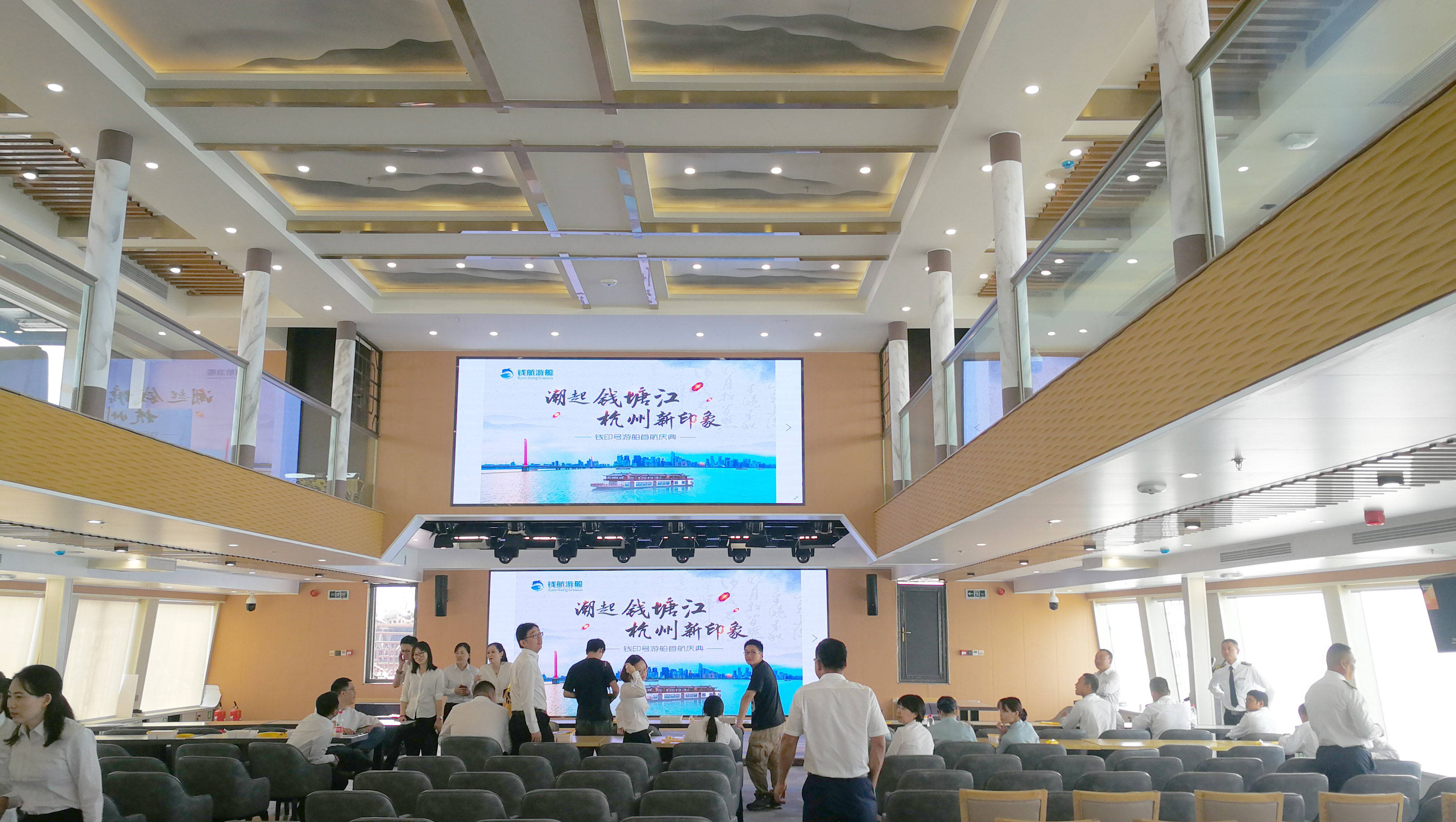 “錢印號”游船——迄今為止錢塘江上最大最先進(jìn)的豪華游船。停靠在錢塘江上的“錢印號”,卷翹飛檐、白墻灰瓦,頂部還有代表杭州古城門的寫意城門元素,像極了一幢江南中式房子浮在水面上。除夜游錢塘江外,“錢印號”游船還將提供包括年夜飯、小型音樂會、發(fā)布會、企業(yè)團(tuán)建等豐富多彩的產(chǎn)品矩陣。為滿足婚禮慶典、生日宴會、商務(wù)會議、企業(yè)年會等場合的多樣化需求,DS團(tuán)隊配以專業(yè)擴(kuò)聲系統(tǒng)(會議、宴會、娛樂演出)、大屏顯示系統(tǒng)、舞臺燈光系統(tǒng)和公共廣播系統(tǒng)高端多媒體設(shè)備。