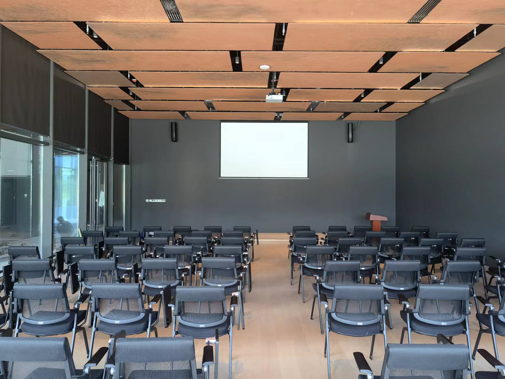 中控系統(tǒng):滿足對會議室音視頻進行實時切換調度,中控系統(tǒng)采用無線觸摸屏進行操作,中控主機和無線觸屏根據(jù)會議室時間使用情況,編輯運行控制程序,下載到中控主機和無線觸摸屏進行控制運行,在無線觸摸屏的控制線,達到音視頻切換實時操控,解決繁瑣操作,輕松控制會議室室內各種系統(tǒng)受控設備操作。
