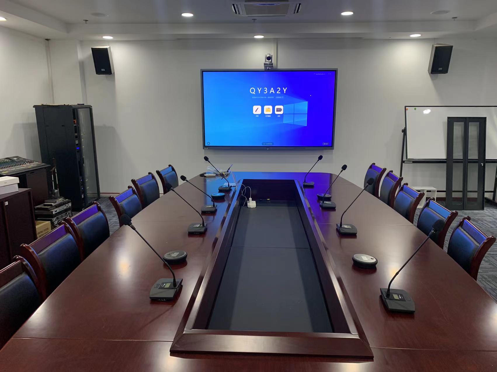 集中控制系統(tǒng),通過定制化編程,控制包括系統(tǒng)一鍵開啟和關(guān)閉、音量大小調(diào)節(jié)、投影開關(guān)、幕布升降、窗簾開關(guān)、燈光開關(guān)等智能控制。避免傳統(tǒng)系統(tǒng)因繁復(fù)動作所引起的誤操作,大大提高工作效率,使用者更能集中精力工作,不必為系統(tǒng)操作而分心。