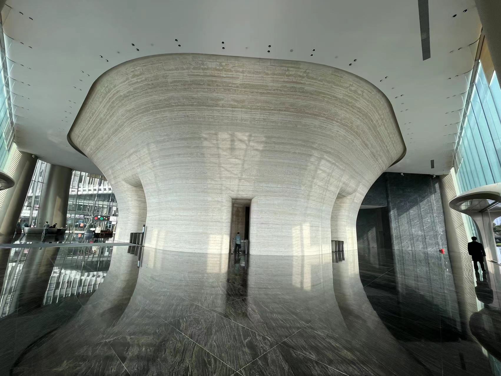 望朝中心位于錢江世紀城,毗鄰城市新建的地鐵站之一,體現(xiàn)了以交通為導向的智能化發(fā)展。望朝中心采用8根向外傾斜的巨型柱子形成主要結(jié)構(gòu),讓它的玻璃外觀看起來具有流動性。
