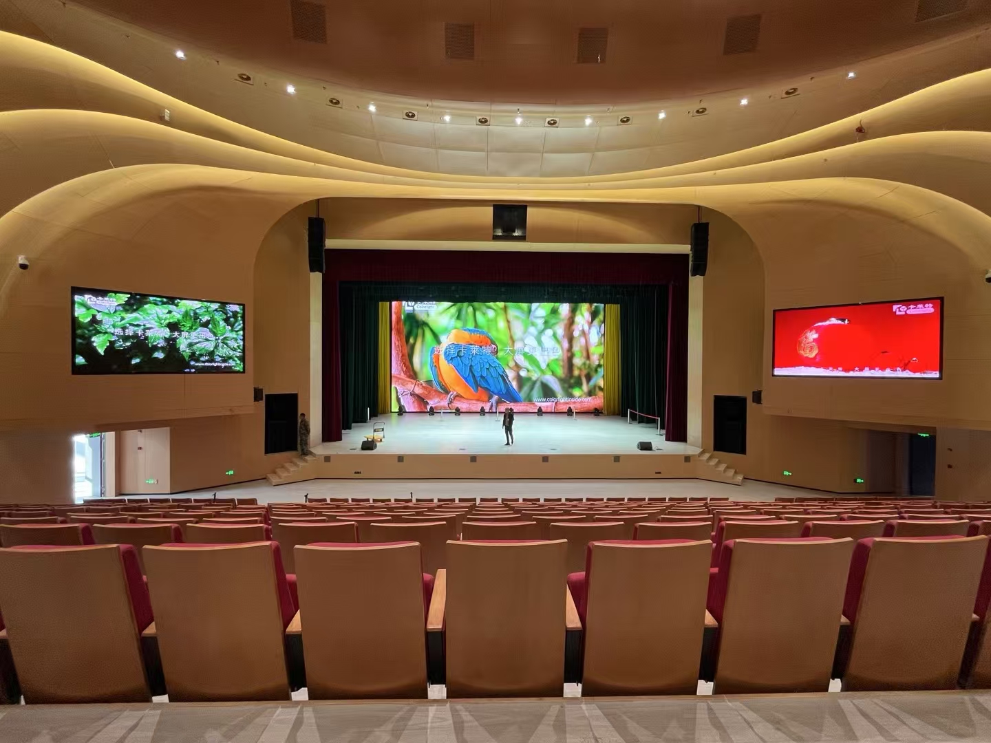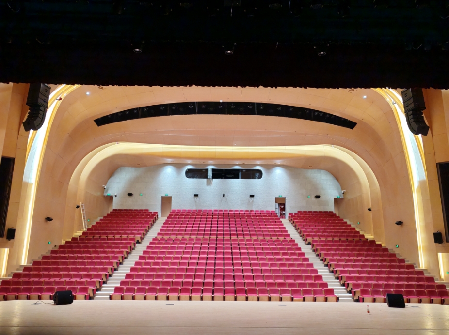 這座劇院內(nèi)部設(shè)施先進(jìn),安裝了高端專業(yè)的音響系統(tǒng),經(jīng)過現(xiàn)場(chǎng)測(cè)量,現(xiàn)場(chǎng)工程師對(duì)補(bǔ)聲揚(yáng)聲器做了合理的延時(shí)處理,做到聲音從一致方向傳來,確保每一位觀眾都能享受到沉浸式的全景聲音效,帶來震撼人心的聽覺體驗(yàn)。