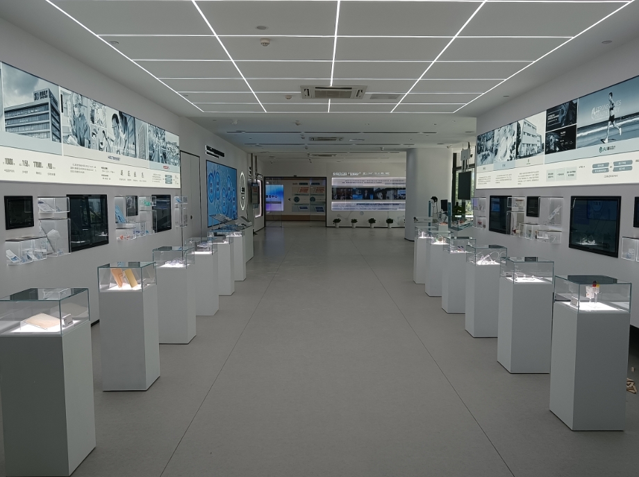 展示中心分為序章、第1章《積勢(shì)謀局》、第2章《科創(chuàng)引領(lǐng)》、第3章《新質(zhì)動(dòng)能》、第4章《融合未來(lái)》、服務(wù)區(qū)板塊,各展區(qū)均具備動(dòng)態(tài)展示項(xiàng),通過(guò)前期需求溝通,針對(duì)動(dòng)態(tài)展示區(qū)域配置擴(kuò)聲輔助展示,音視頻同步,聲像一致。并通過(guò)中控配置,實(shí)現(xiàn)對(duì)動(dòng)態(tài)展示項(xiàng)內(nèi)容播控、音量和燈光進(jìn)行智能化控制。