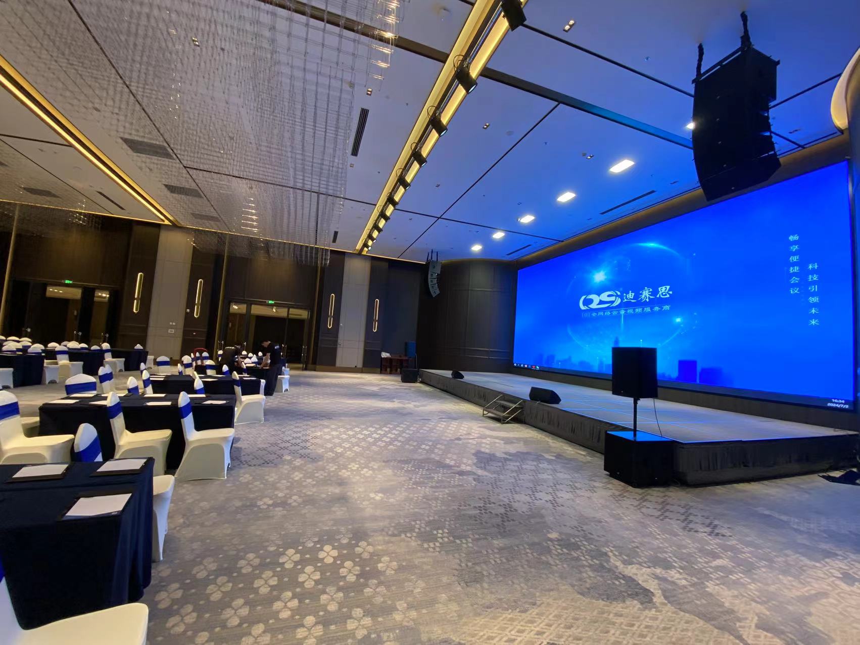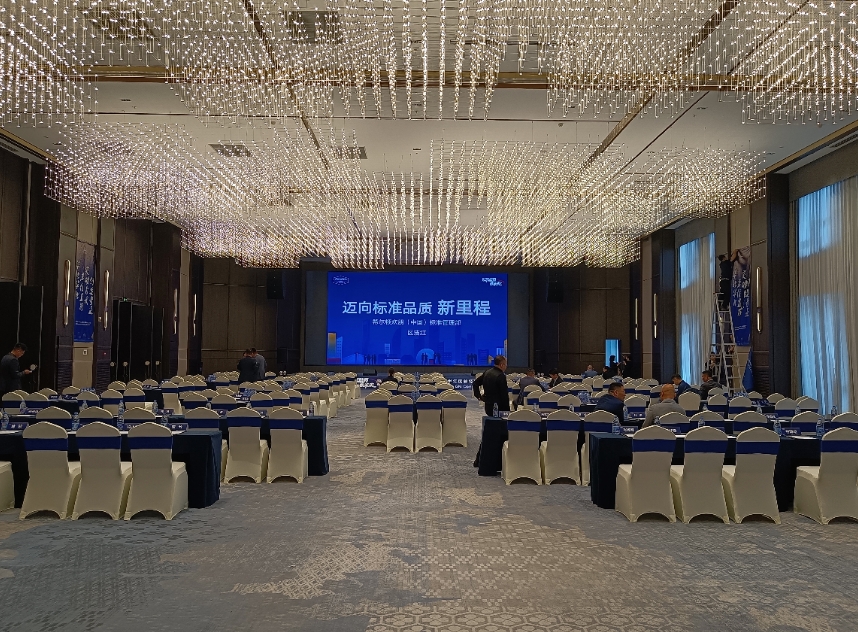 通過前期需求溝通,宴會廳配置會議燈具,娛樂使用時采用租賃設(shè)備,預(yù)留電源與控制接口,配置面光燈和會議平板燈,滿足會議場景使用。