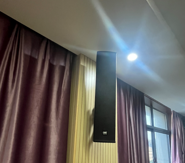 改造前,會(huì)議室內(nèi)發(fā)言人聲模糊,臺(tái)式電腦畫面經(jīng)常斷連,話筒拾音效果不佳,調(diào)音臺(tái)元器件老化有電流。我司通過(guò)專業(yè)設(shè)備檢測(cè)發(fā)現(xiàn)現(xiàn)場(chǎng)混響較大,且原設(shè)計(jì)采用全頻音箱人聲突出不明顯,我司為其更換陣列音柱,音質(zhì)清晰外觀與現(xiàn)場(chǎng)裝修搭配合適;采用機(jī)架式調(diào)音臺(tái),設(shè)備上機(jī)柜使整體看起來(lái)更整潔;采用無(wú)線話筒和無(wú)線投屏,解決話筒拾音不佳、電腦連接不穩(wěn)的情況。