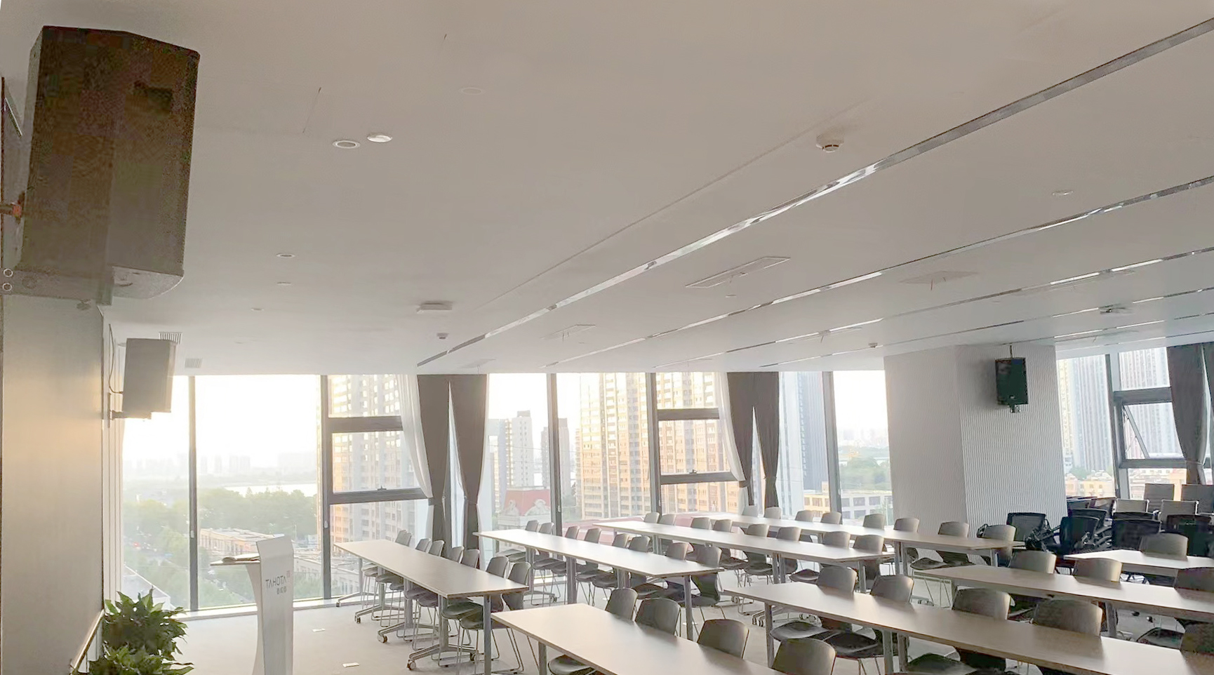 本次我司為其新裝修辦公樓打造會(huì)議場(chǎng)所,滿足其日常大會(huì)、客戶參觀講解等需求?,F(xiàn)場(chǎng)采用四只全頻音箱,搭配處理器、反饋抑制器,滿足不同場(chǎng)景使用需求,日常會(huì)議時(shí)人聲清晰,講解演示視頻時(shí)聲音飽滿??紤]到日常會(huì)議發(fā)言人數(shù)多,我司為其選配5g會(huì)討話筒;講解演示時(shí)需要流動(dòng)講解,搭配專用手持話筒。音頻與大屏聯(lián)動(dòng),電腦連上高清線即可出畫面至大屏出聲音至音箱。