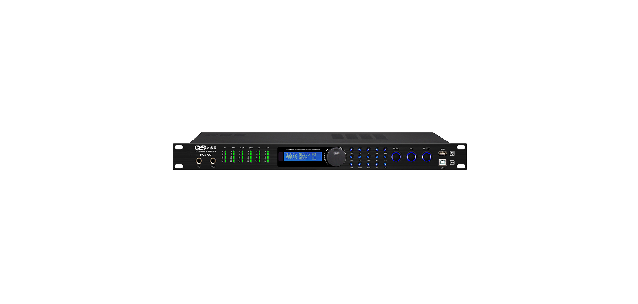 2.音樂輸入采用15段參量均衡,7段立體聲數(shù)字變調控制,可調噪聲門控制;