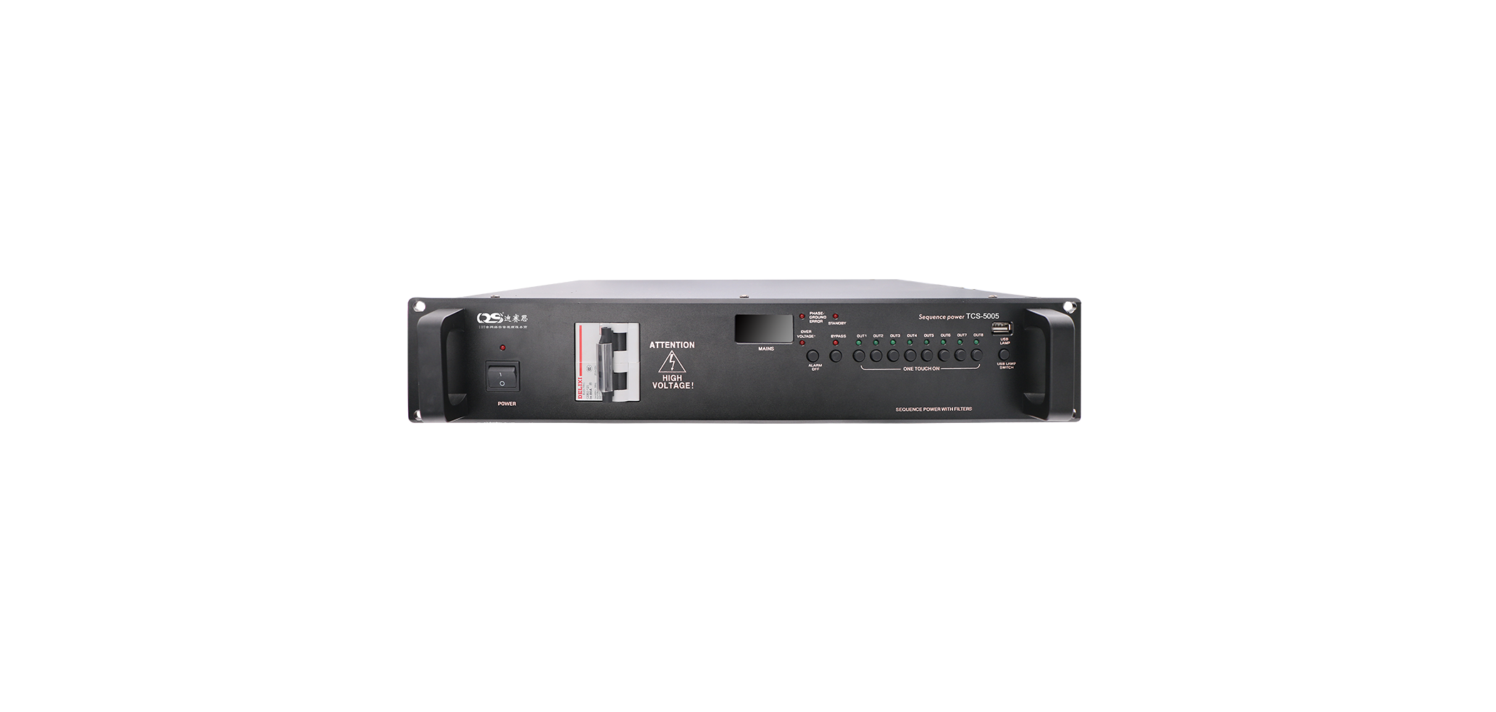 1.輸入D型80A動(dòng)力型空開,實(shí)時(shí)電壓指示,LED指示燈顯示工作狀態(tài),USB接口燈具輔助照明配置;